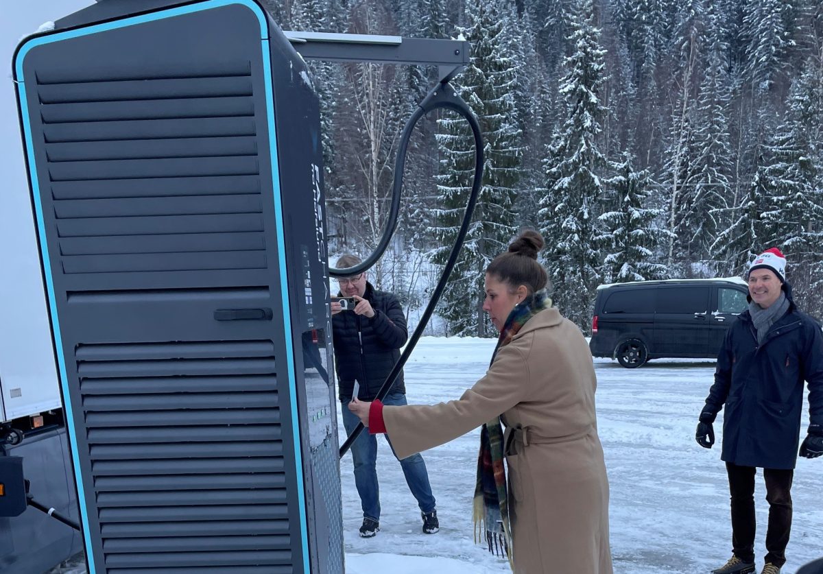 Ordfører Heidi Granli stod for åpningen av den nye hurtigladestasjonen. Med en ladekapasitet på 400 kW kan lastebiler og busser lade raskt og effektivt på rundt 45 minutter, samtidig som sjåførene tar pålagt hvilepause.